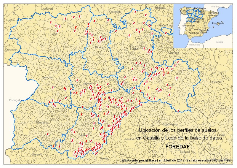 - Base de datos FOREDAF de la Unidad de Edafología y Ecología del Departamento de Silvopascicultura de la ETSI de Montes (Universidad Politécnica Madrid) y que contiene 479 perfiles de las distintas zonas forestales de Castilla y León. Para tener acceso a esta información hay que ponerse en contacto con dicha Unidad departamental. http://www.upm.es/observatorio