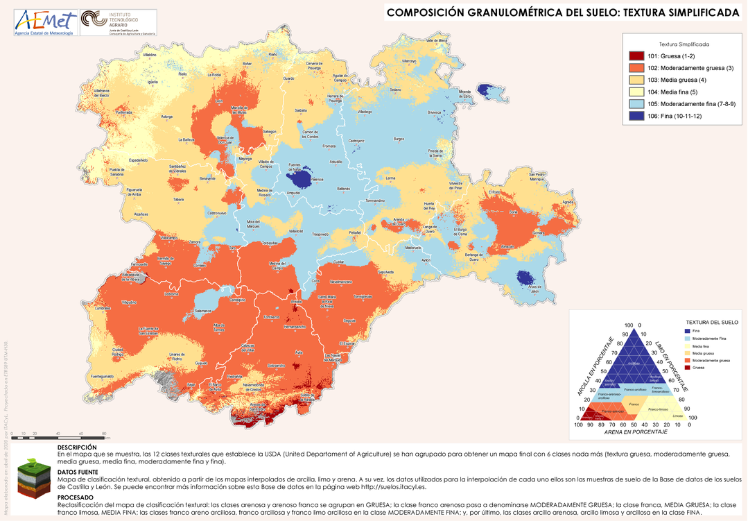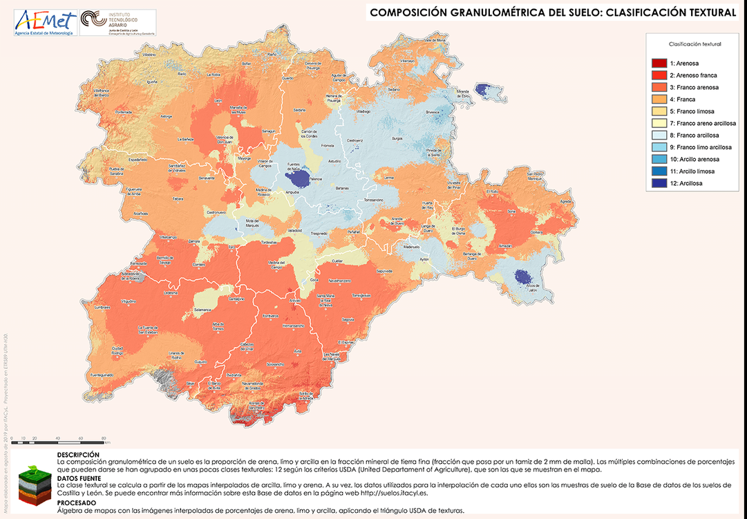 Mapa de texturas (en formato SHP) de interés histórico de las provincias de León, Zamora, Salamanca, Palencia y Valladolid, a escala 1/200.000. Procede de la digitalización y fusionado de los mapas de suelos que se elaboraron dentro del Mapa Agronómico Nacional, elaborado por el Ministerio de Agricultura en los años 1966 a 1973.